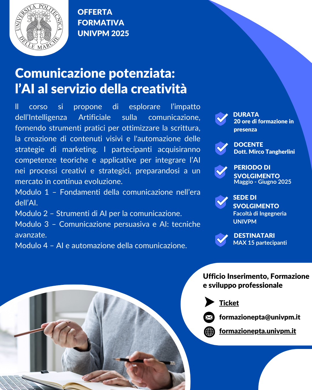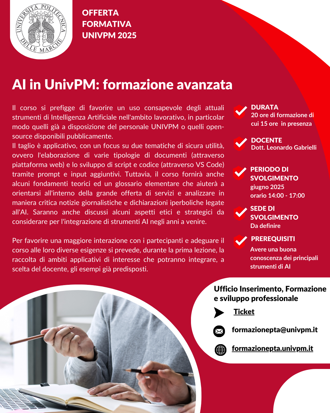 - AI in UnivPM: formazione avanzata - massimo 20 partecipanti - POSTI ESAURITI - CONCLUSO