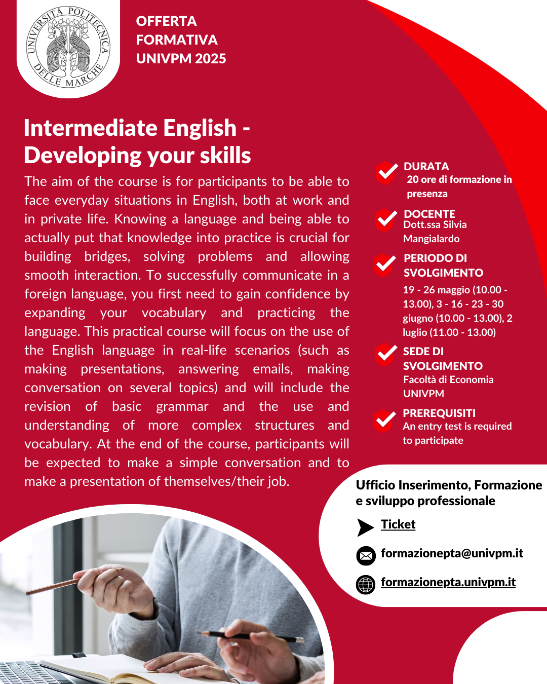 - Intermediate English - Developing your Skills - - placement test - massimo 20 partecipanti - CONCLUSO
