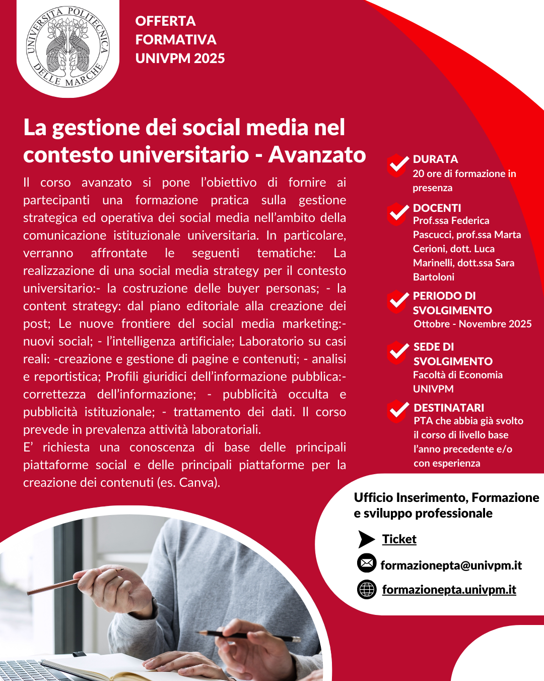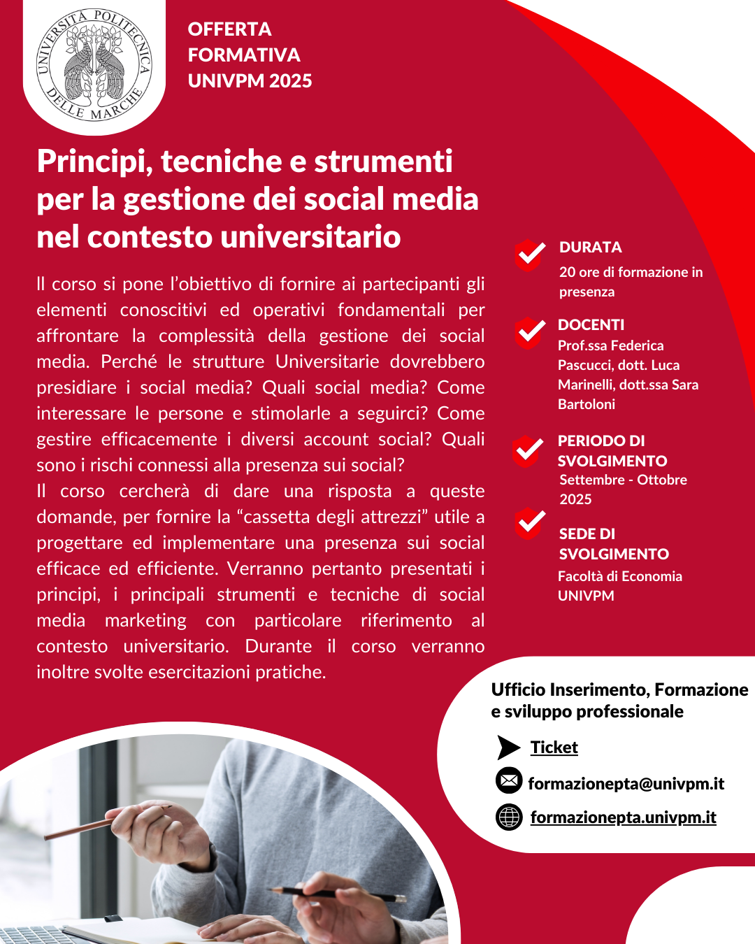 - Principi, tecniche e strumenti per la gestione dei social media nel contesto universitario - massimo 30 partecipanti - posti disponibili