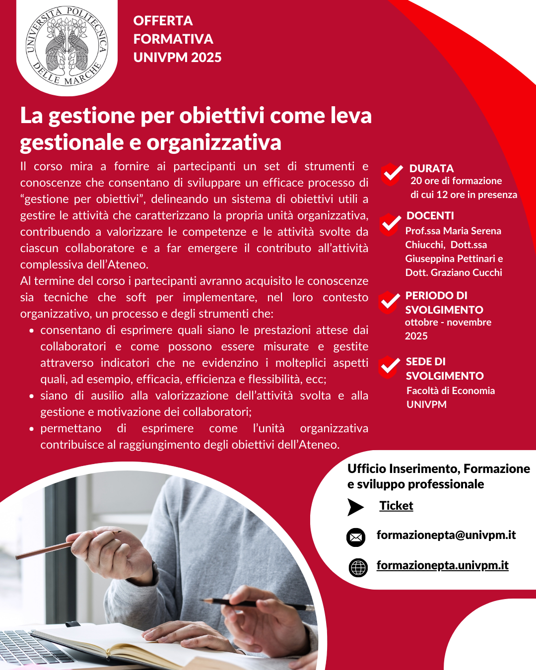 - La gestione per obiettivi come leva gestionale e organizzativa - massimo 30 partecipanti - posti disponibili
