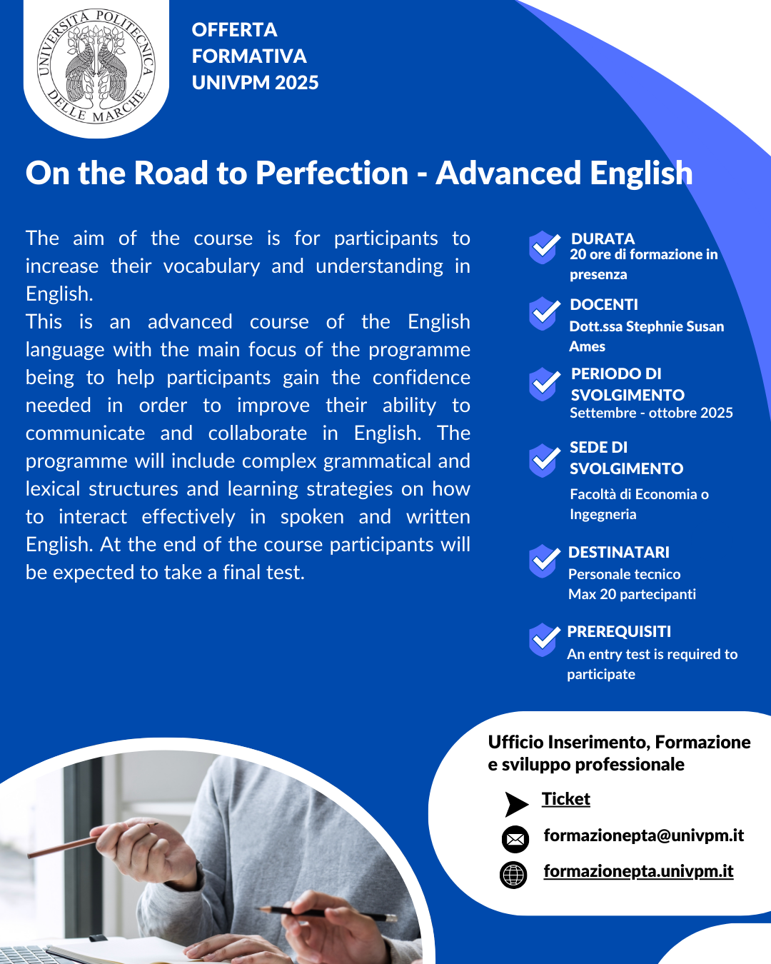 - On the road to perfection - Advanced English - placement test - massimo 20 partecipanti - posti disponibili
