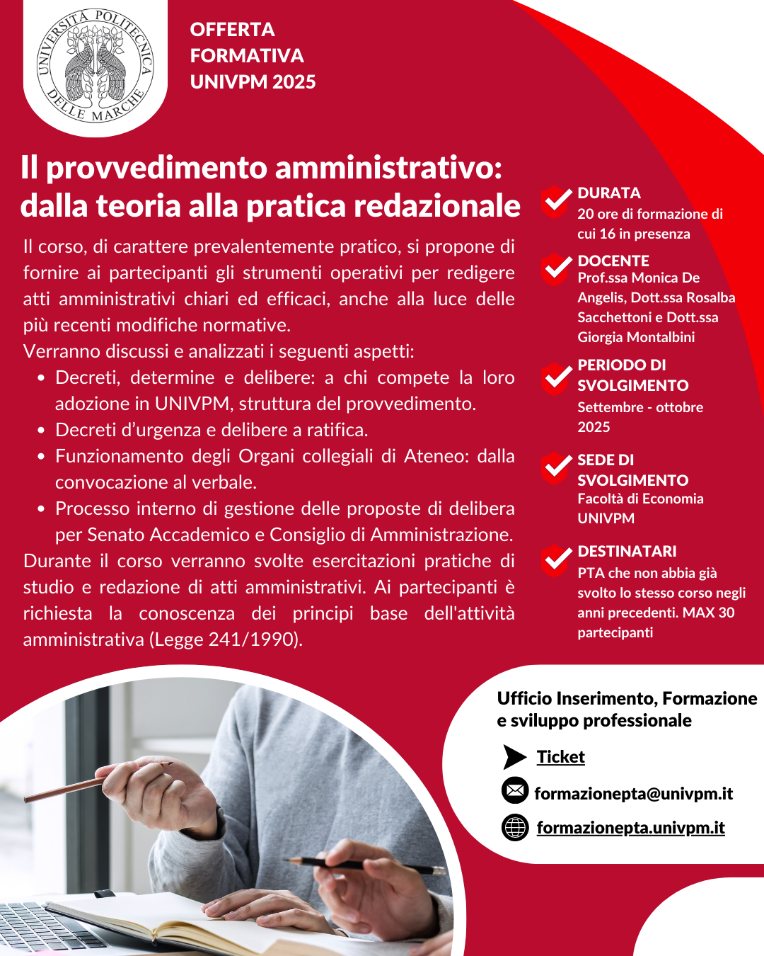 - Il provvedimento amministrativo: dalla teoria alla pratica redazionale - massimo 30 partecipanti - Posti disponibili