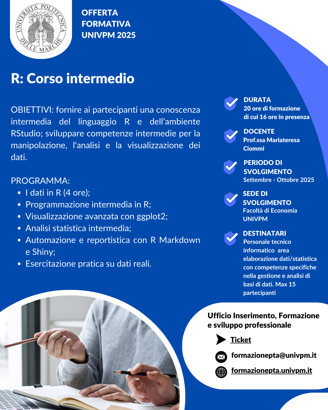 - R: CORSO INTERMEDIO - massimo 15 partecipanti - posti disponibili