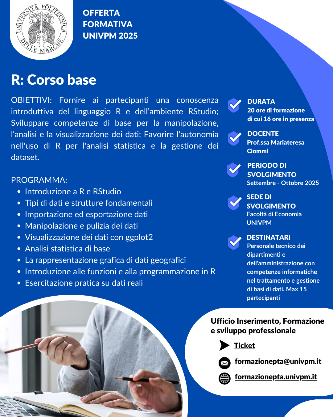 - R: CORSO BASE - massimo 15 partecipanti - posti disponibili