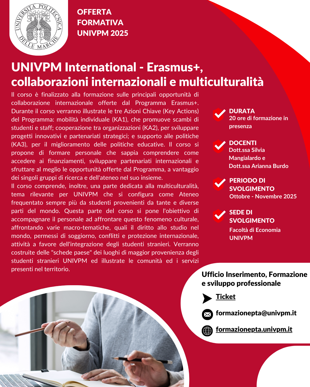 - UNIVPM International - Erasmus+, collaborazioni internazionali e multiculturalità - massimo 20 partecipanti - posti disponibili