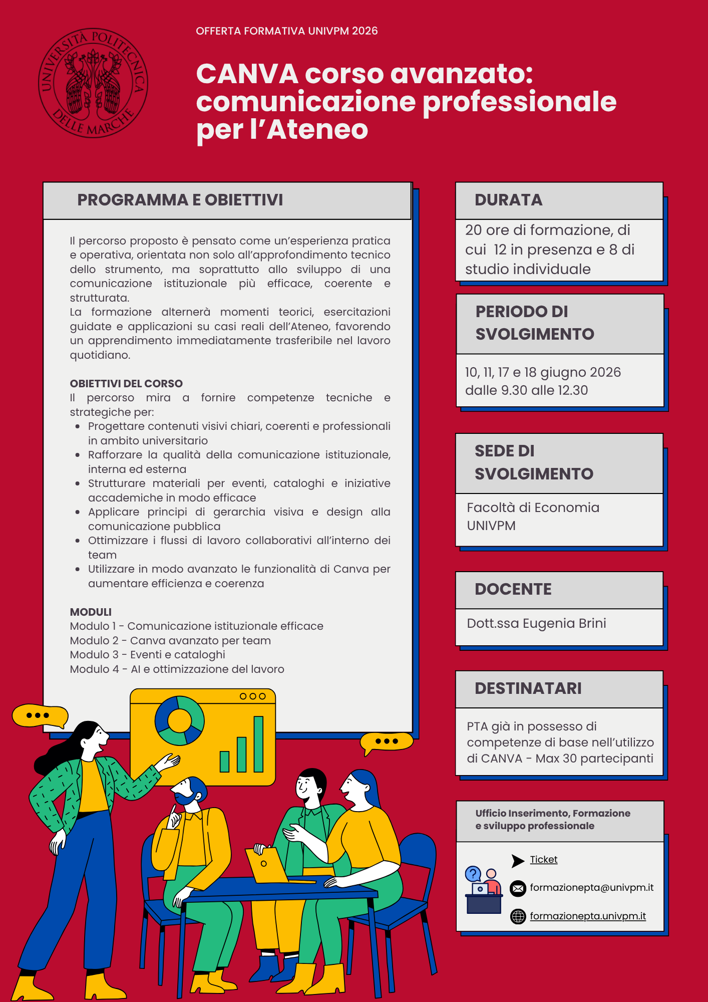 - CANVA corso avanzato: comunicazione professionale per l’Ateneo – massimo 20 partecipanti