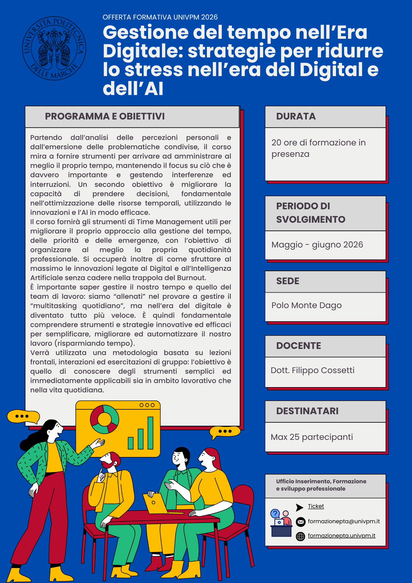 - Gestione del tempo nell'Era Digitale: strategie per ridurre lo stress nell'era del Digital e dell'AI – massimo 25 partecipanti